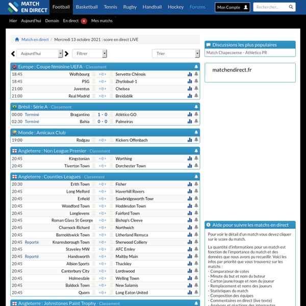 Les plus belles équipes de premier league en direct sur tous vos écrans Mar 20, 2020 · the host can start the game manually by clicking the "start match" button. How to join a game. 2 août 2021 | 20h45 craven park. Aug 03, 2021 · matchs en direct. Aug 05, 2021 · resultats de rugby en direct, consultez tous les resultat de rugby sur notre livescore qui diffuse les scores des matches de rugby en live. Transmission légale en direct sur internet et à la télé. Les grands matchs de rugby seront affiches sur ce live score. L'abonnement rmc sport donne accès à des centaines de match de foot en direct, le tout commenté par nos experts rmc sport live. Sur cette page, suivez les résultats des matchs de foot en direct. Le service de scores et de résultats de football en direct sur flashscore.fr vous offre les scores de 1000+ championnats de foot. Match en direct vendredi 06 août 2021 : Résultats en direct, classements, compositions et détails de match.